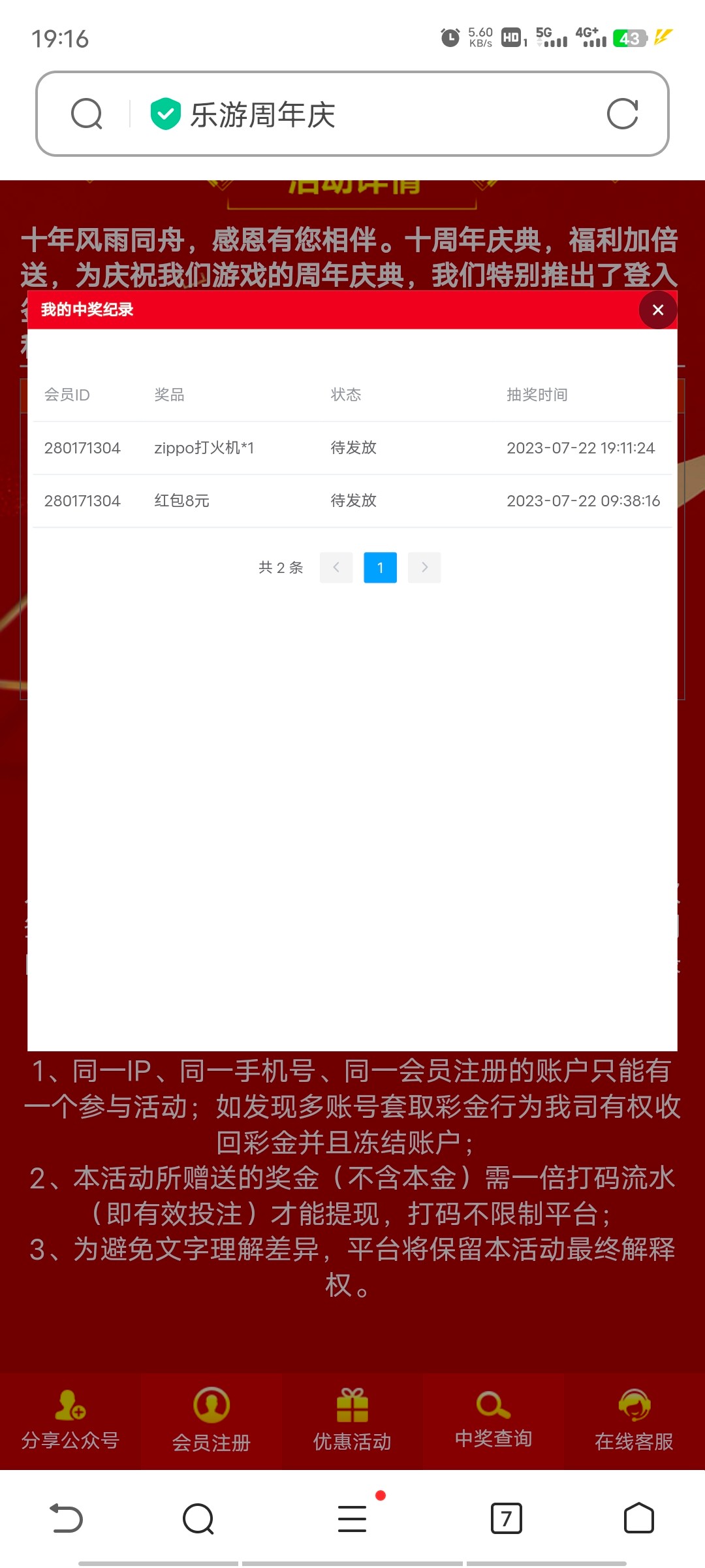 乐游这个系列的都是垃圾,可以说做活动前电子肯定是调整过了,年份彩金原来玩首存存100,8元都不送了,砸金蛋还是算了有那功夫搞点别的几块钱也到手了,这b台子的反水是真的低