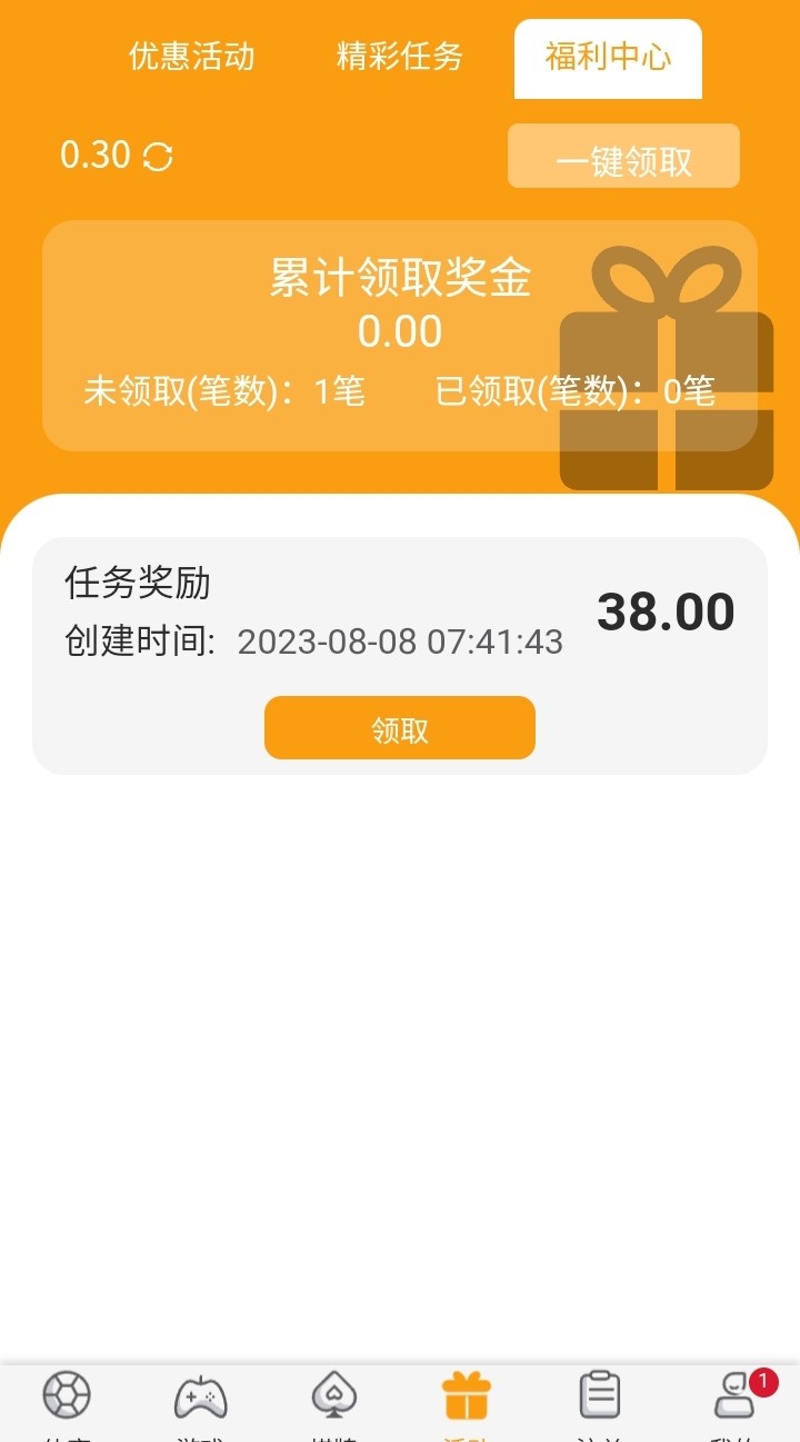 连续登录七天的在福利中心领取38