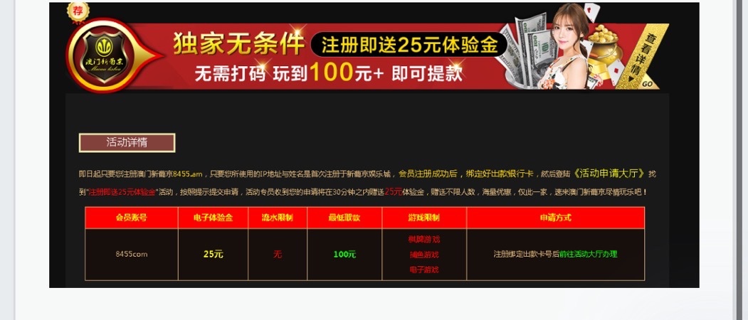 新用户注册完善个人信息绑定平台银行卡前往游戏大厅申请25彩金。