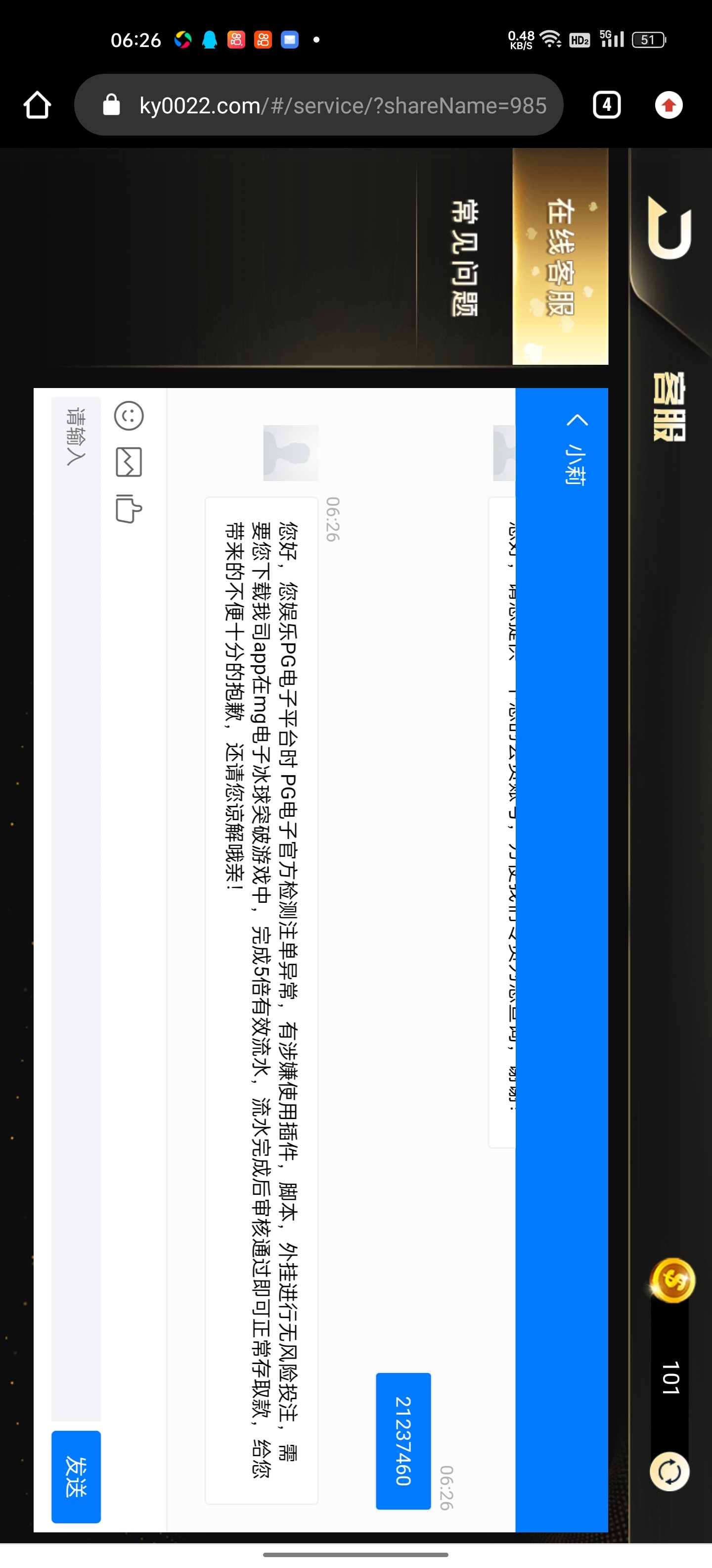 跟我一样。首存100送58我打到700提现。十个小时退回。说涉嫌外挂。然后叫打五倍冰球。打完了又退回。说审核好通知。这个是黑台。千万别去。