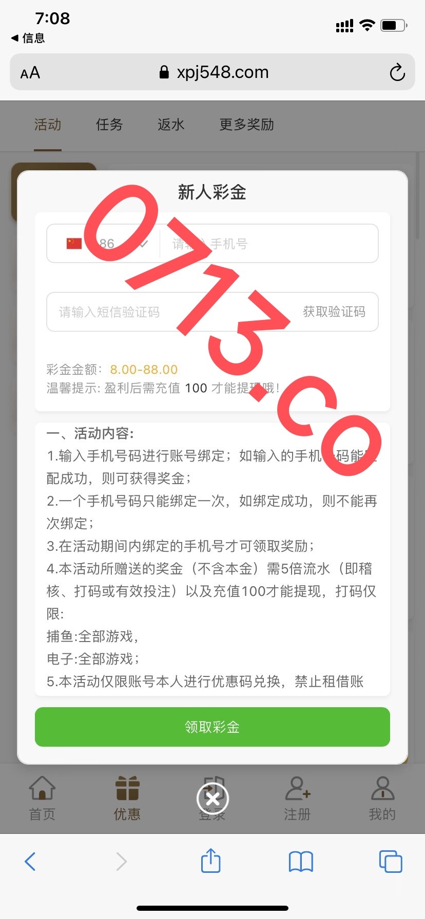 碰瓷短信特邀,提现需要充值100才能提具体自行查看活动内容/自测