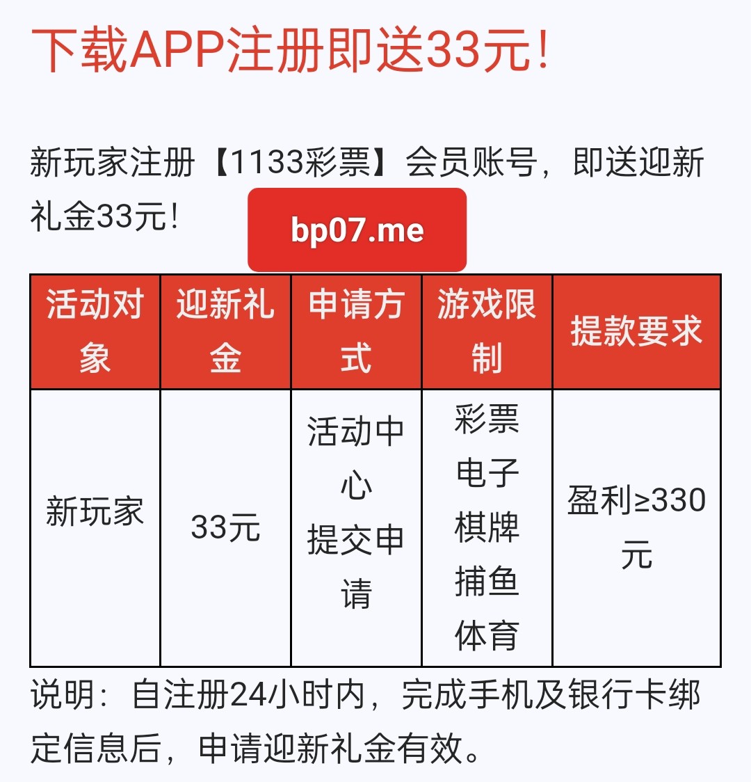 注册绑定手机号银行卡 去优惠自助申请 24小时内派送 最低提款330【前几个月的帖子发过没玩的去玩】