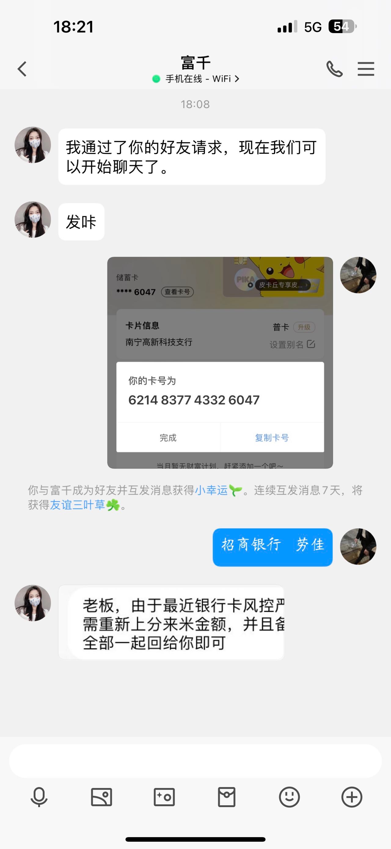 千万不要相信,充值才送分的群,还要提现要充值对账的群,100%是诈骗,这两天被骗8.6k,他们会装成很多个好友加你,或者拉你进那种小群聊天,骗取你的信任,我挂他们俩个骗子的银行卡,大家以后玩的时候注意