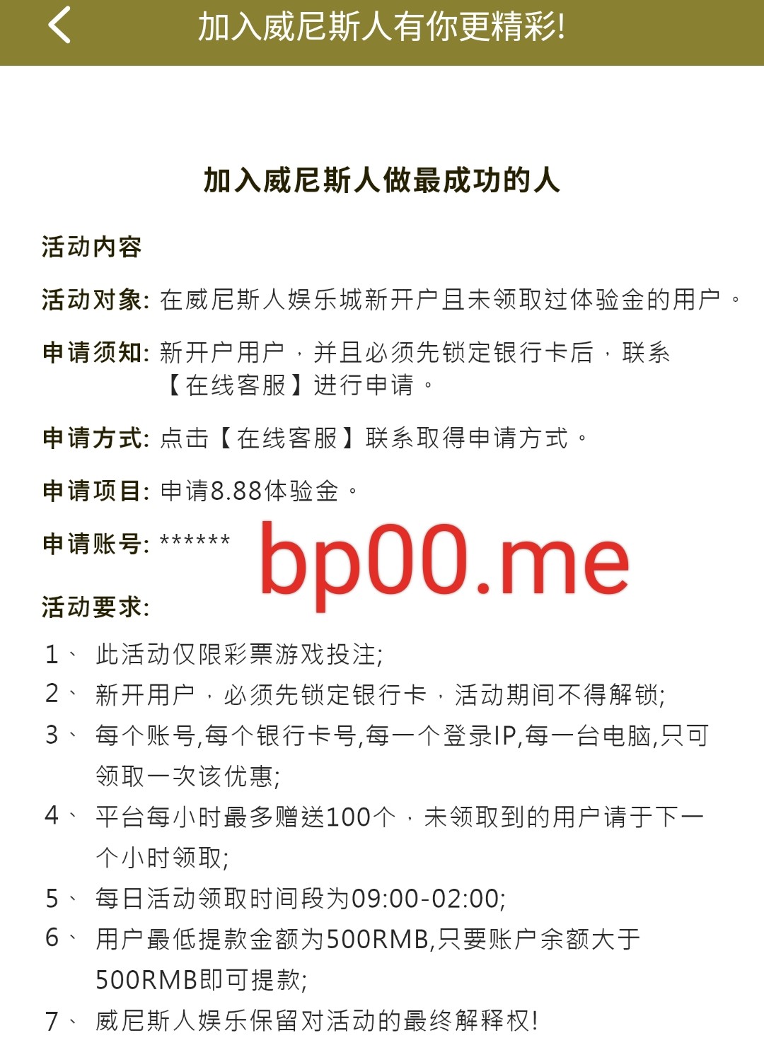 所有撸成功的老表,最后请向客服说明是在“黑黑社区bp00.me”看到的