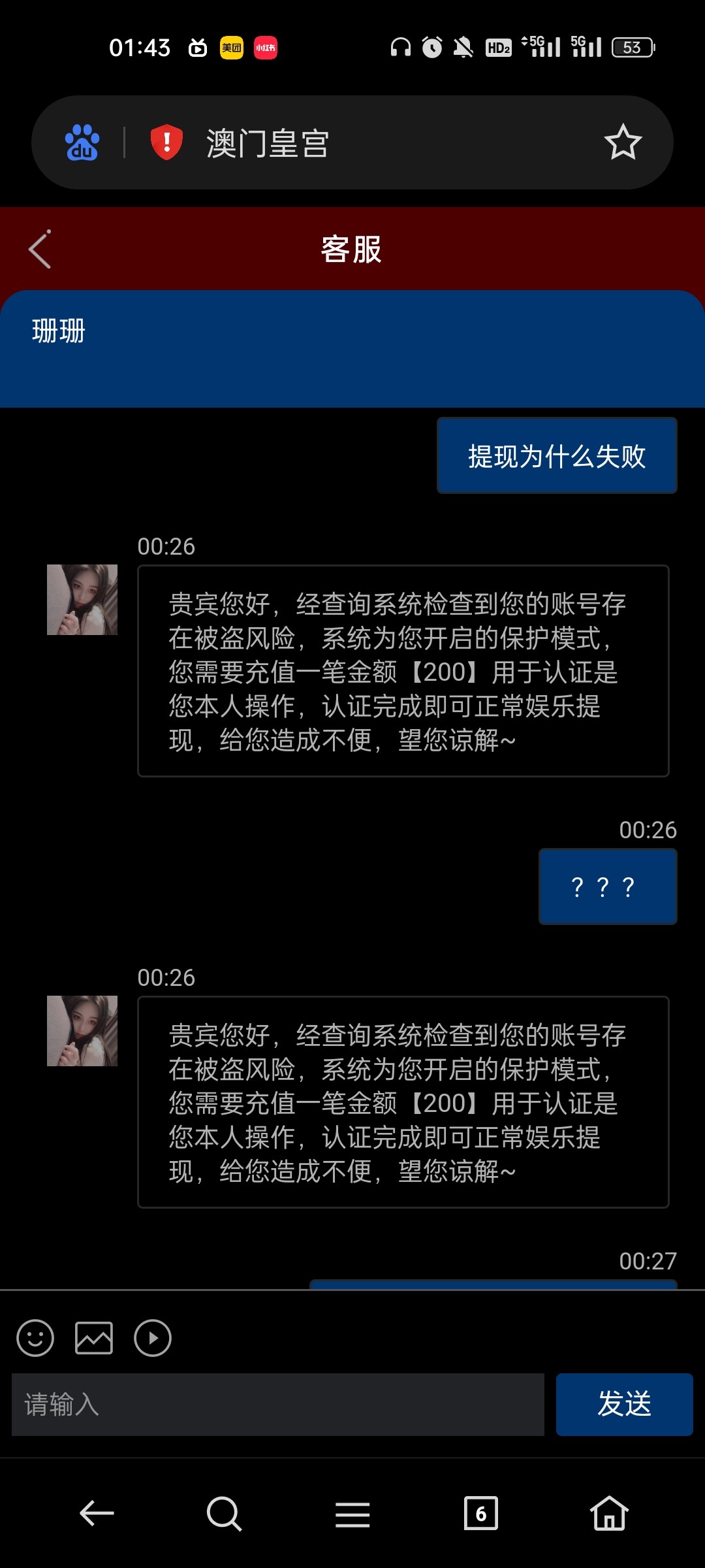 我真是贱啊 脑残了真去充值那200 又让我充150