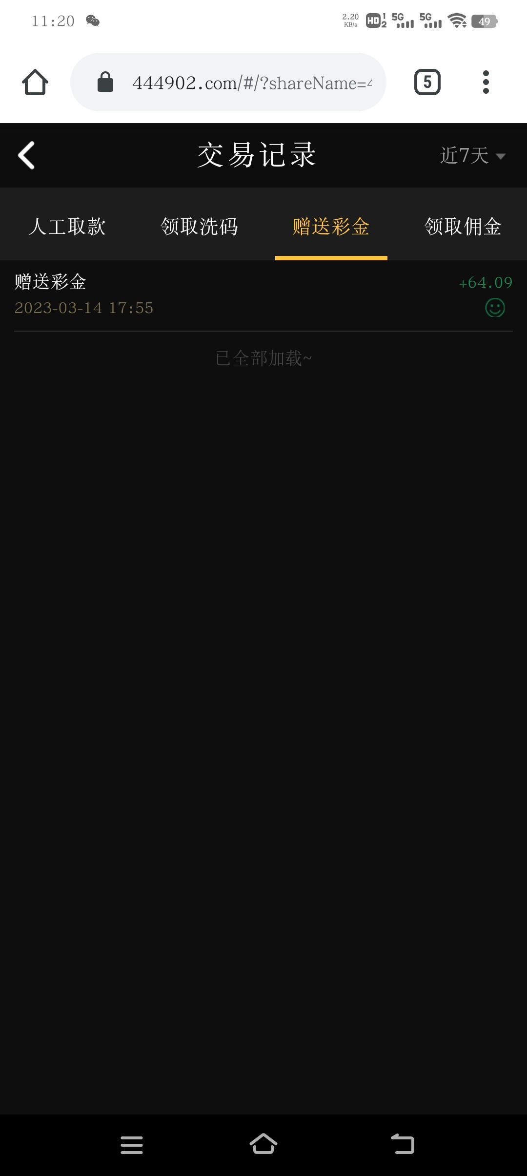 赢了1200进去故意输了600,充了120,不知道到不到了,之前就到了100