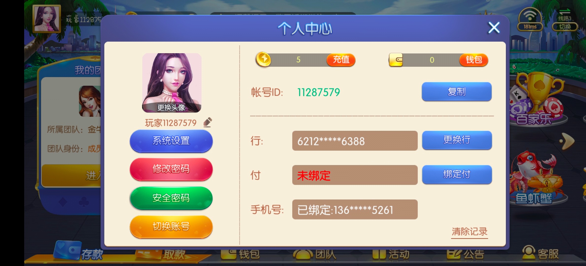 手机号注册秒5   绑定银行卡在钱包里面看有没有随机彩金  这个彩金我不知道是特邀还是随机  如果没有5元可以玩牛牛  最低5元进  第一把直接抢庄或者压玩  100提款