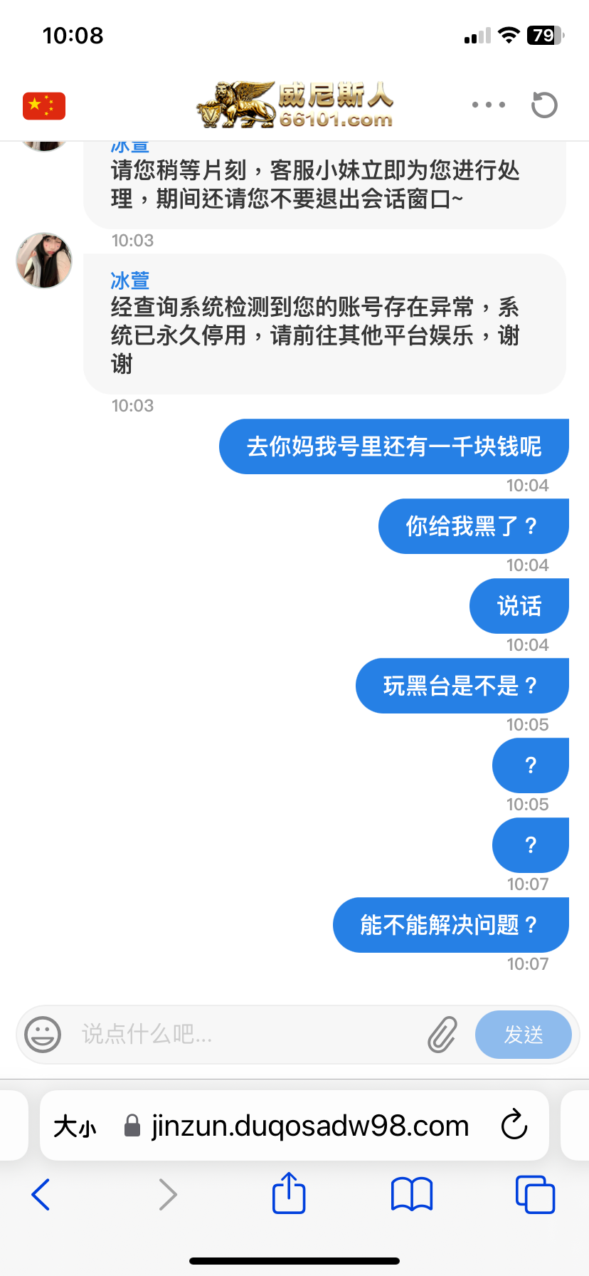 威尼斯人黑一千元!跟狗屎一样 !大家避坑!!!