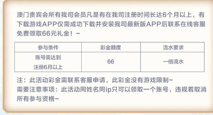 新用户无视 老用户有号注册6个月以上找客服领取66彩金 具体活动看图自测