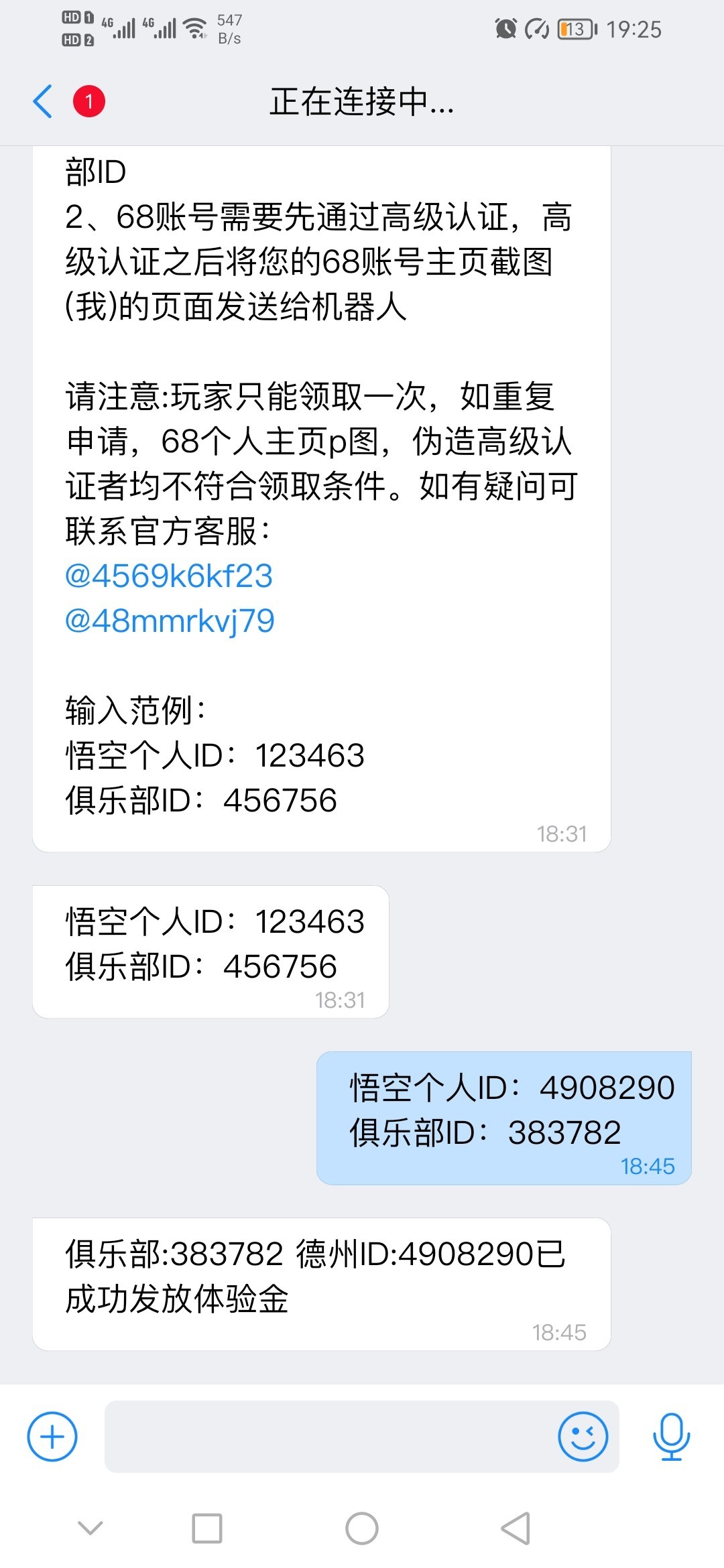 下载悟空app注册加入联盟,然后下载68软件高级实名后给机器人发账号,秒送 现在机器人秒送 梭哈就行了,可以提u,已测试到账 提现方式,两倍流水,提现到68c,直接卖或转u