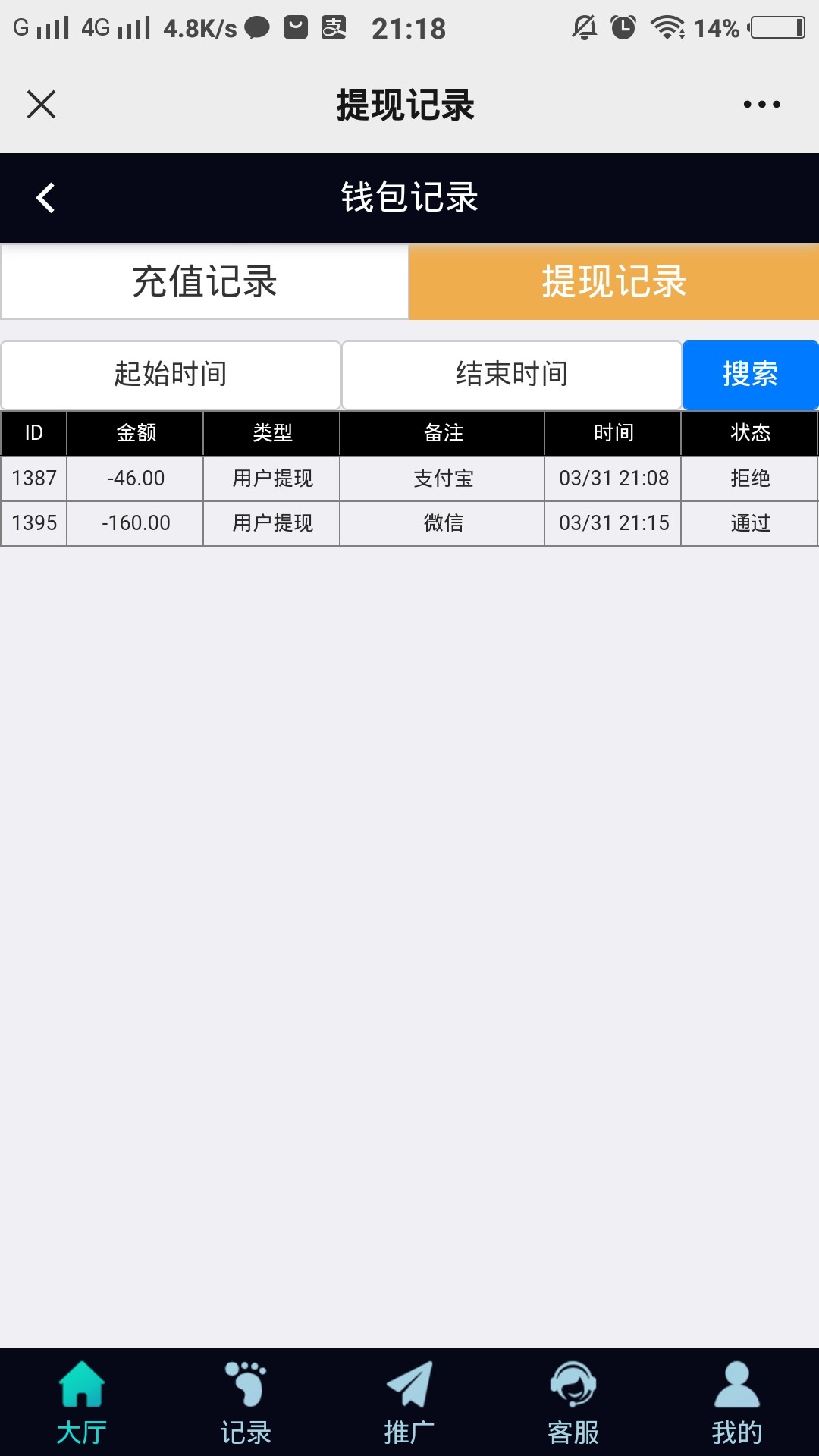 提现通过了直接给客服发收款码和提现记录截图 会到账的 几十块钱不至于黑