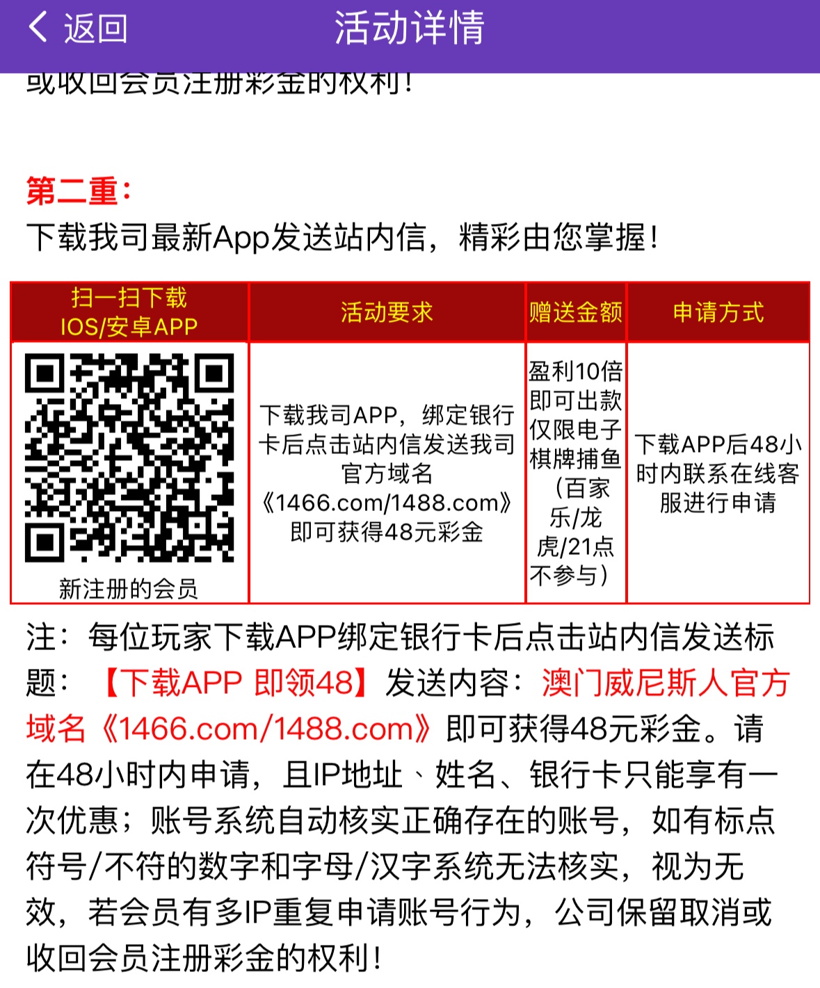 注册完善资料联系在线客服申请注册28彩金,下载APP发送站内信联系客服送48彩金,盈利彩金的10倍才能出款,限电子捕鱼棋牌
