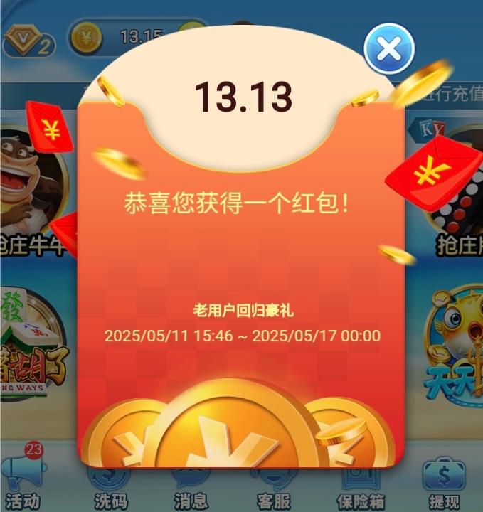 碰瓷电话回归彩金,在名单内登入上去就送了,有号的兄弟可以看看