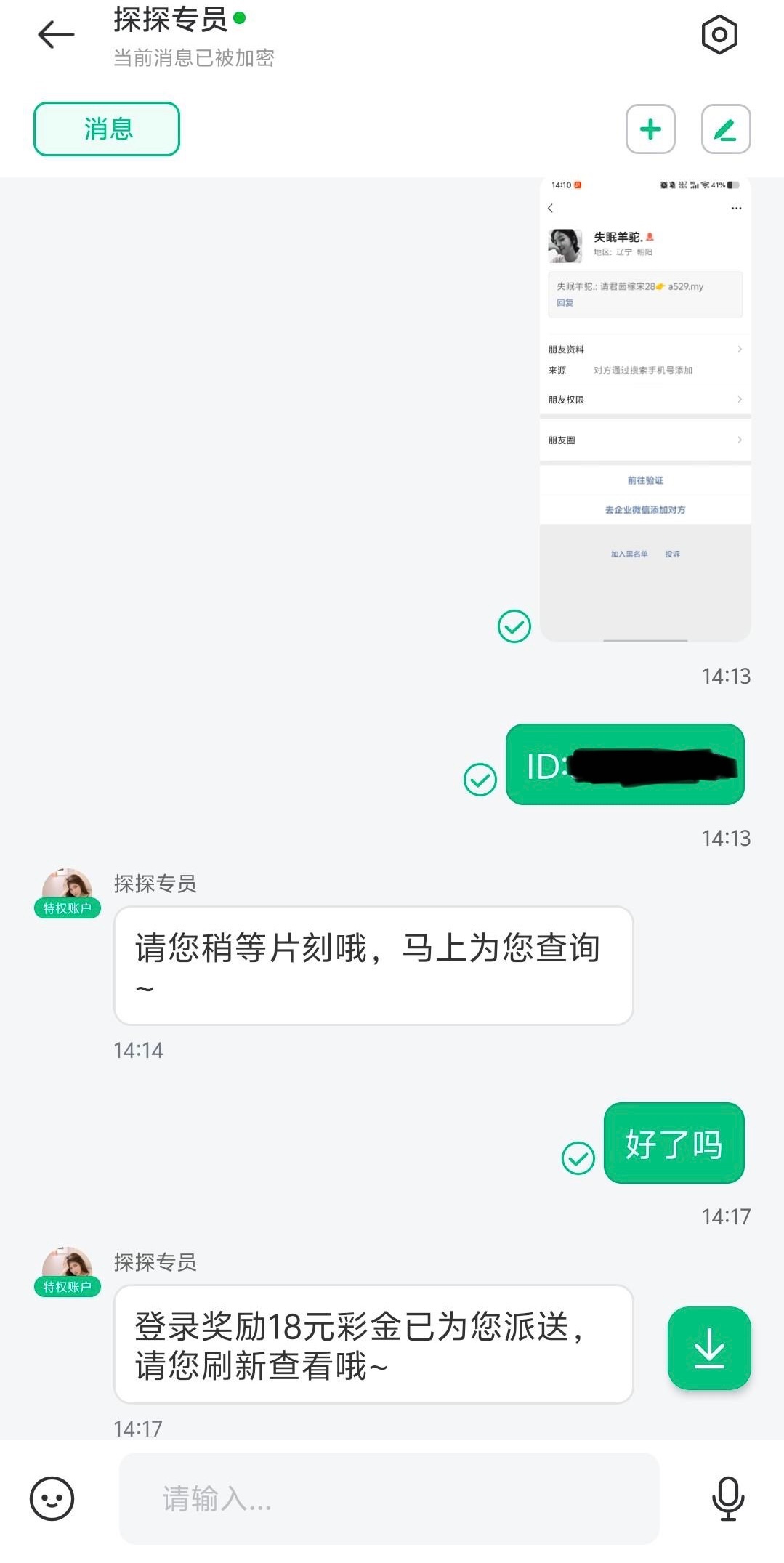 老用户可以去碰瓷试试,要下载聊天软件领取,企业号:612017 企业邀请码:CEEWIR 客服专员:tantan