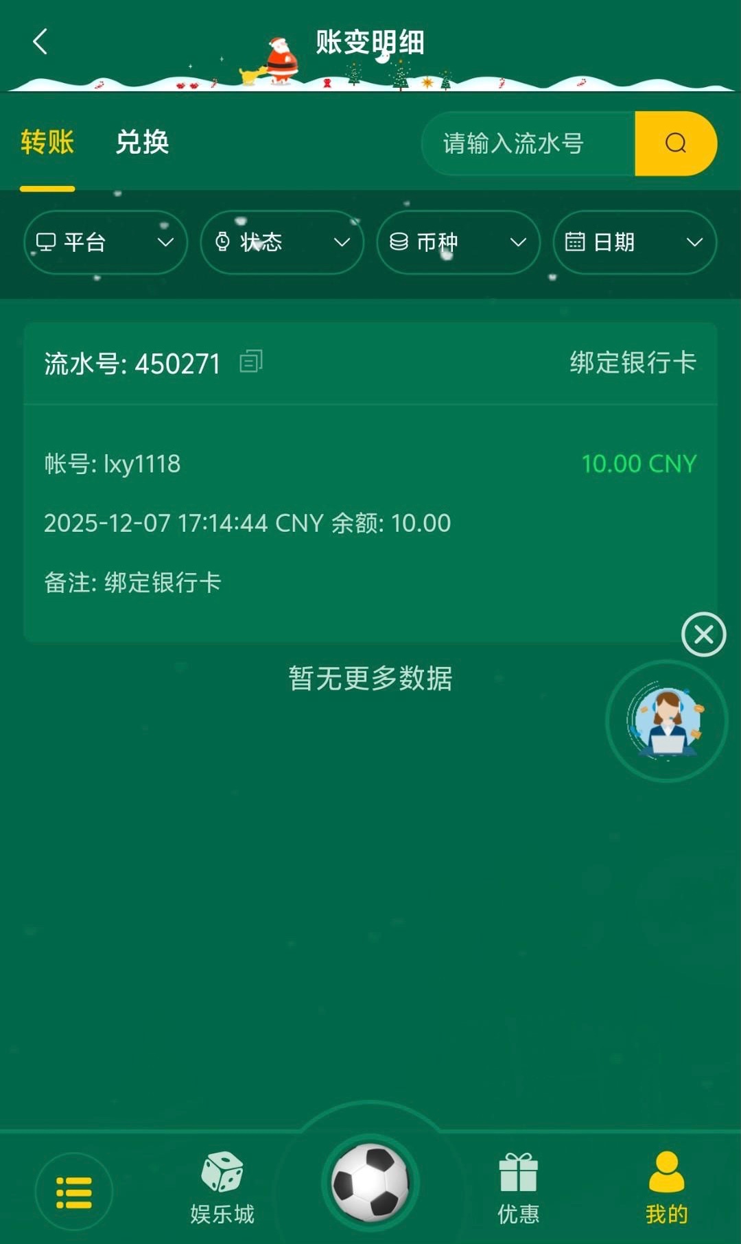 注册绑定好信息自动送的,只能玩体育,要100流水