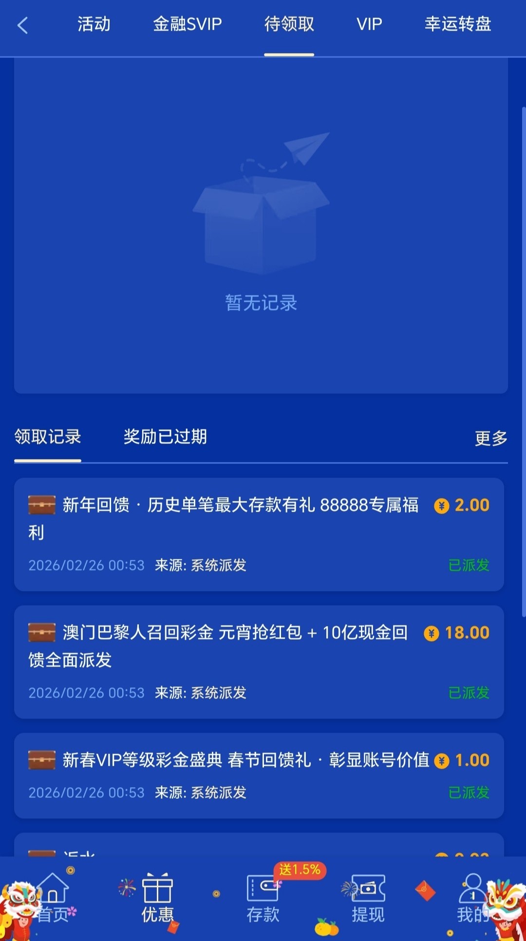 久不登入的哥们上号看一下有没有召回彩金或元宵彩金,元宵彩金还有等四天才能领取