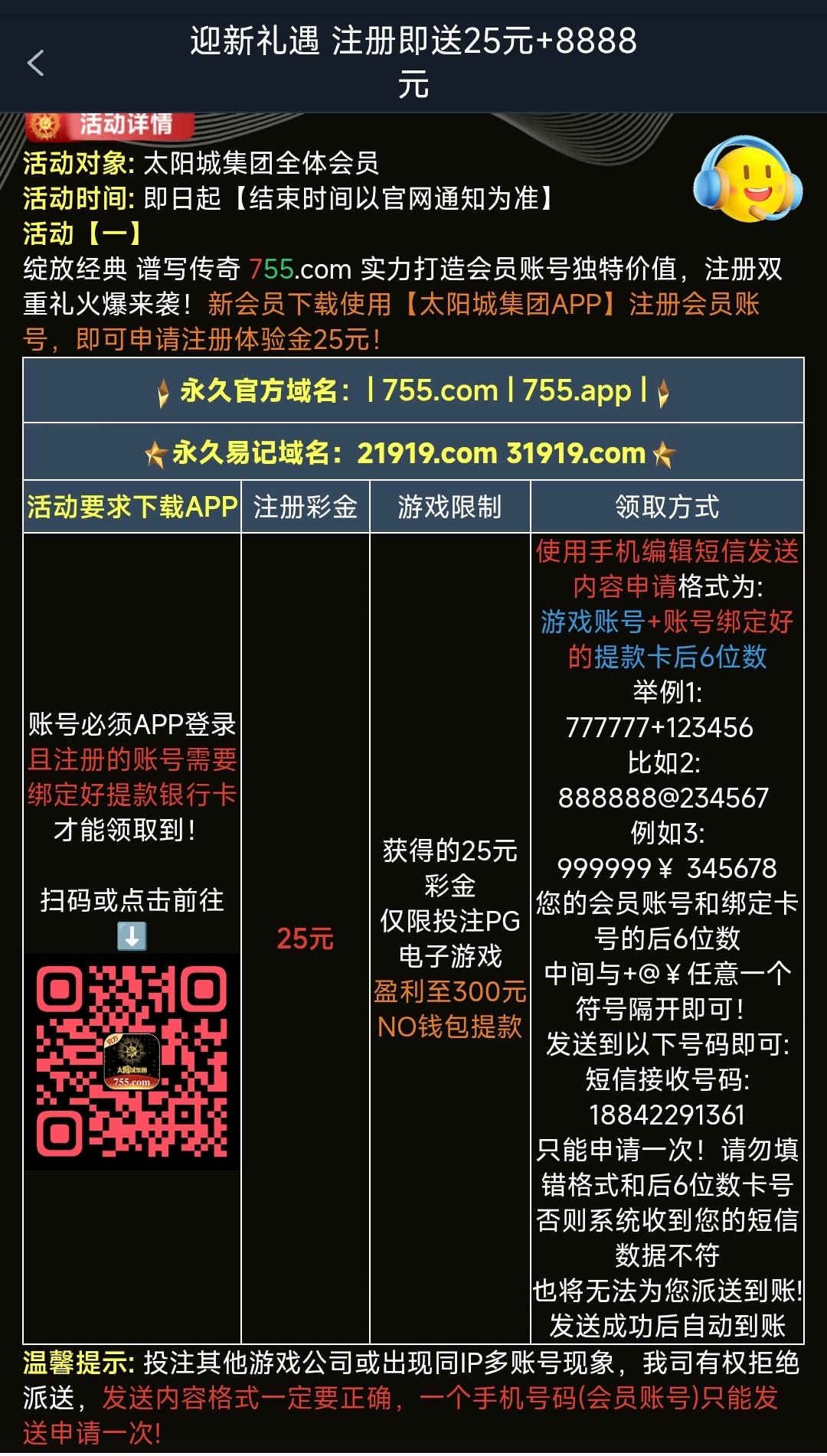 先下载APP在进行注册绑定手机号银行卡,发短信账号+银行卡后六位数,仅限娱乐PG电子,需盈利至300NO钱包取款