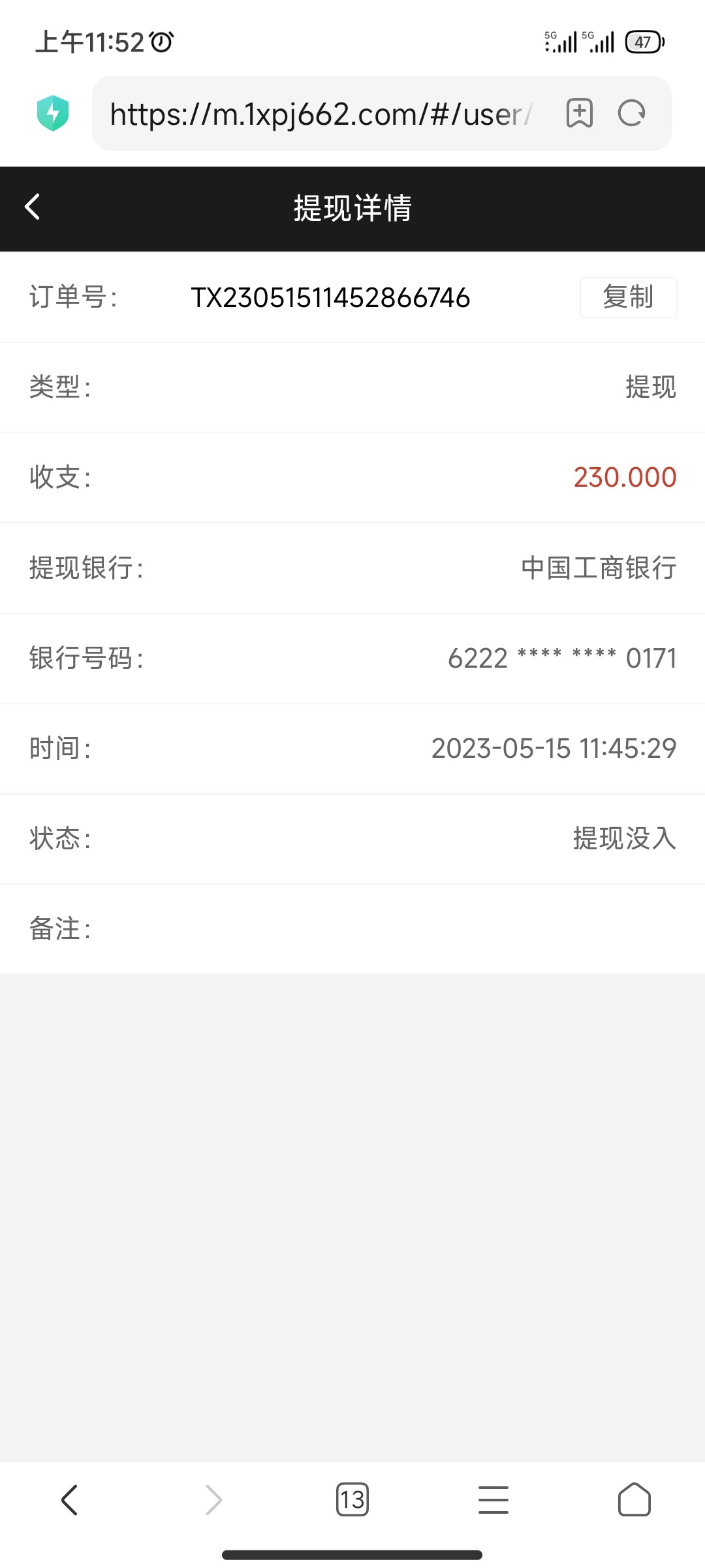 我提100提1500二十分钟到账。