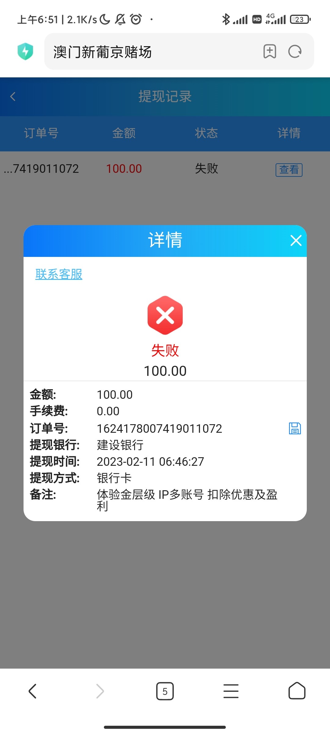 提了2个号,一个成功,一个多账号扣除赢利