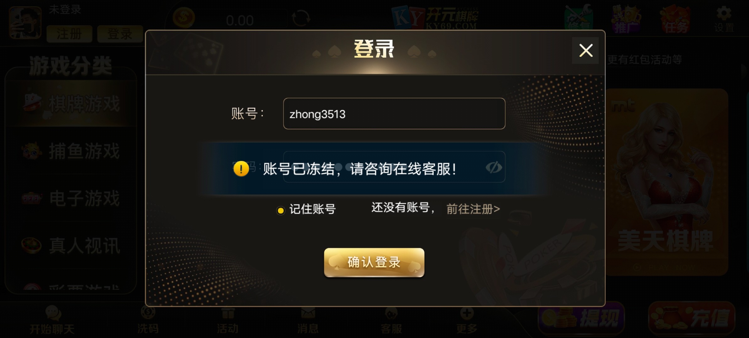 这开元假的吧充500上了1200提款结果账号被冻了