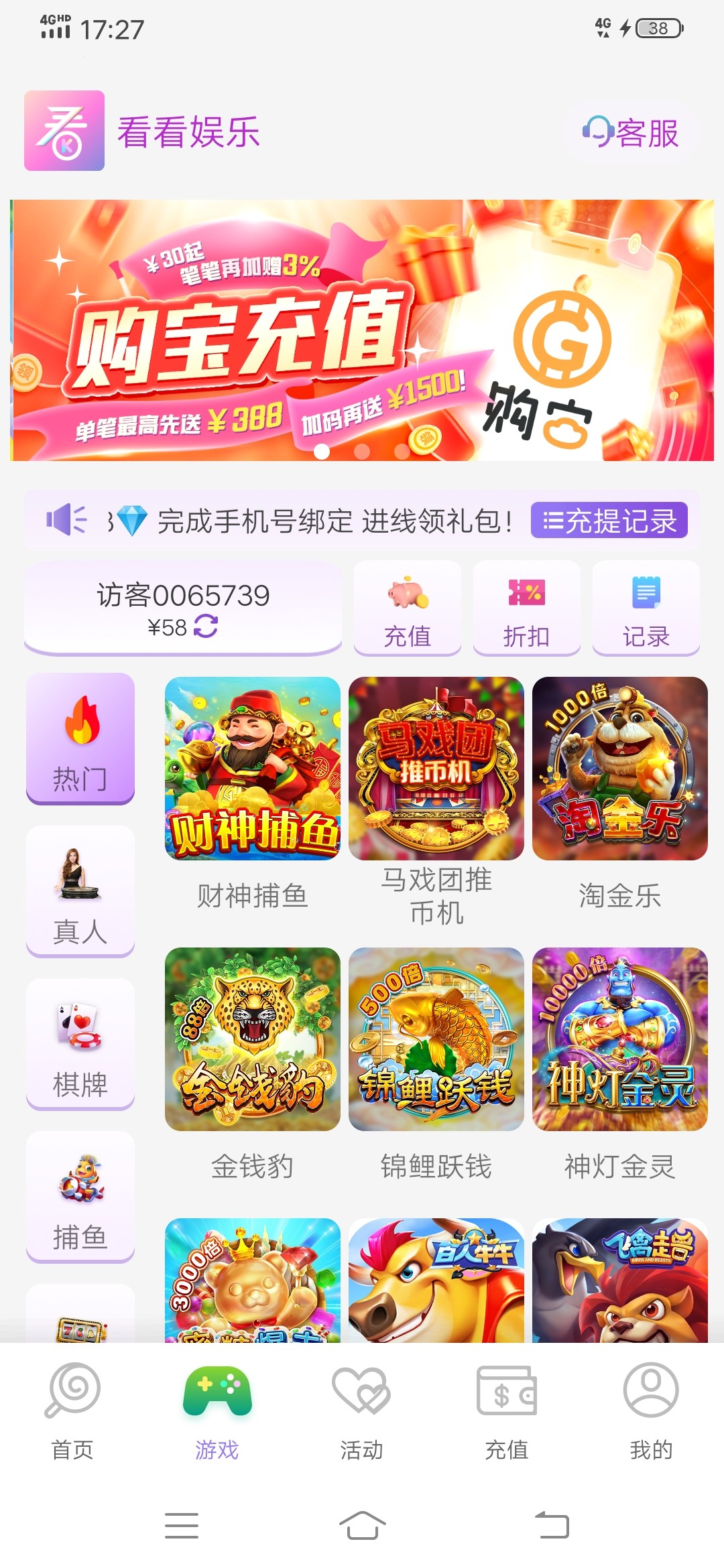 活动看过,提款要充值一笔才给提,而且这平台最低好像300起提,找客服排队都排了一百多号人,估计马上就黄了