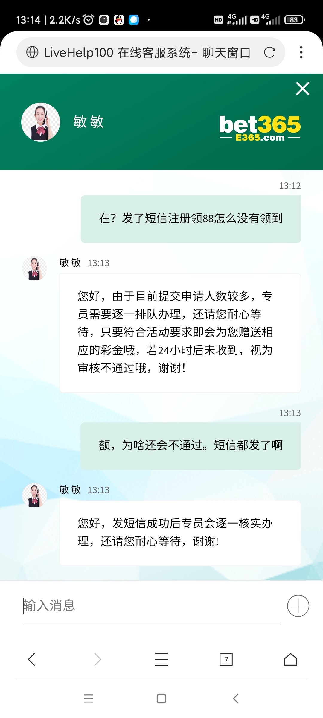 天天给我发短信。两个号申请了又不送。这种狗台子还想指望着别人充钱