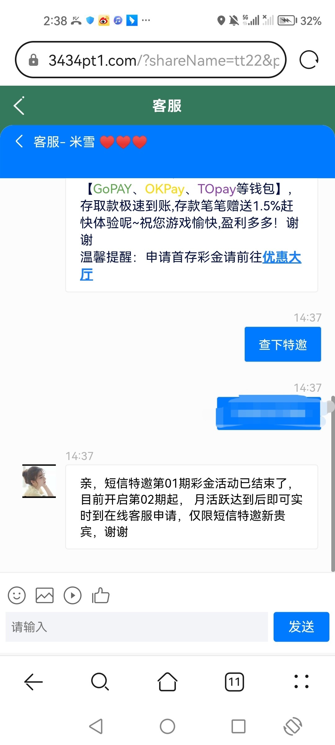 短信特邀碰瓷赠18