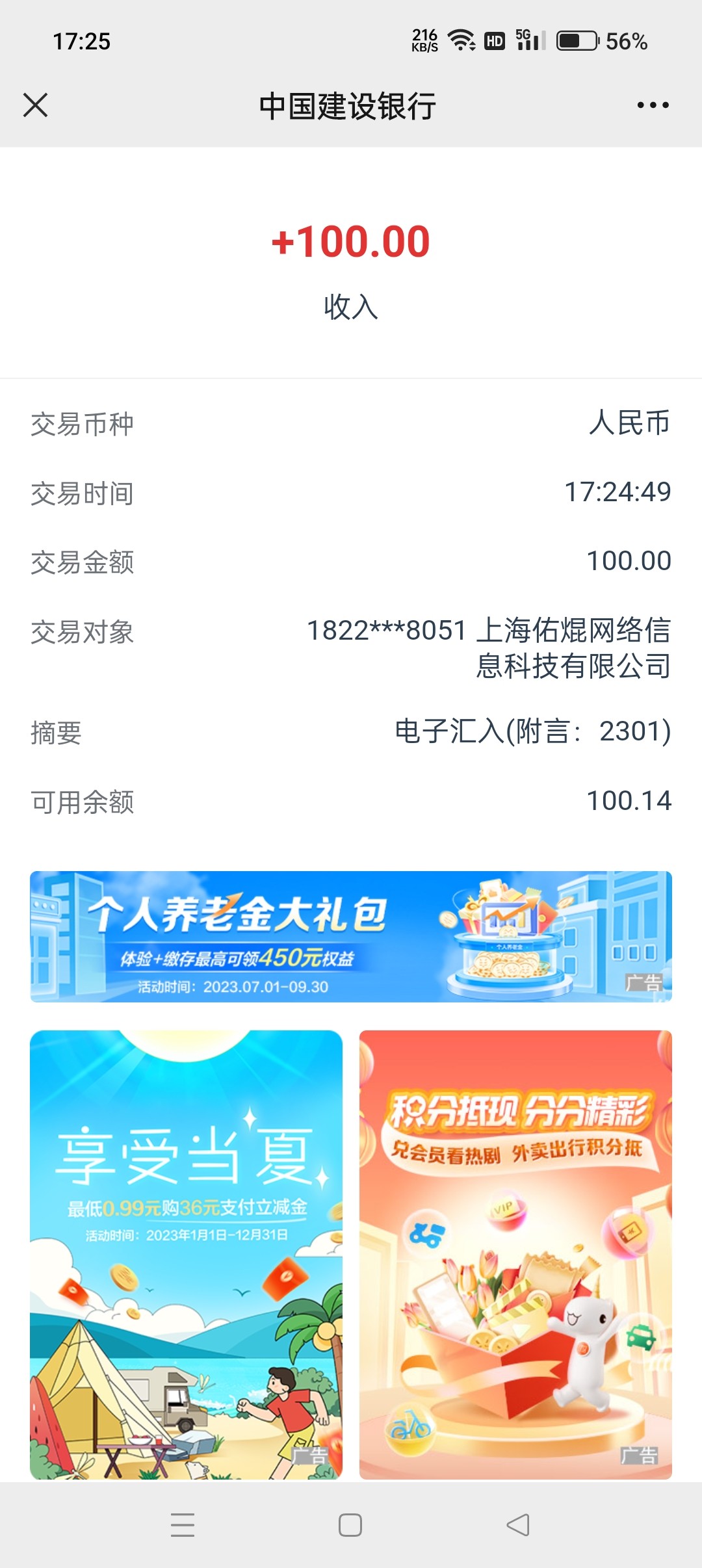 到账了